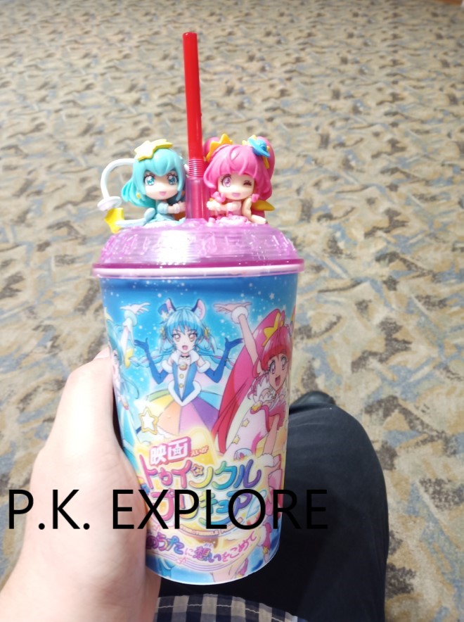 และอันนี้ก็เป็นแก้วน้ำที่ระลึกจากภาพยนตร์ (มี Hikaru และ Lala อยู่บนฝาปิด) ที่มีอยู่จำนวนจำกัด ซึ่งราคาอยู่ที่ 1000 เยน (จะสั่งเป็นน้ำอะไรก็ได้นะ แก้วนี้ผมซื้อมาจากโรงภาพยนตร์ HUMAX ที่อยู่ติดกับ AEON Mall Narita)