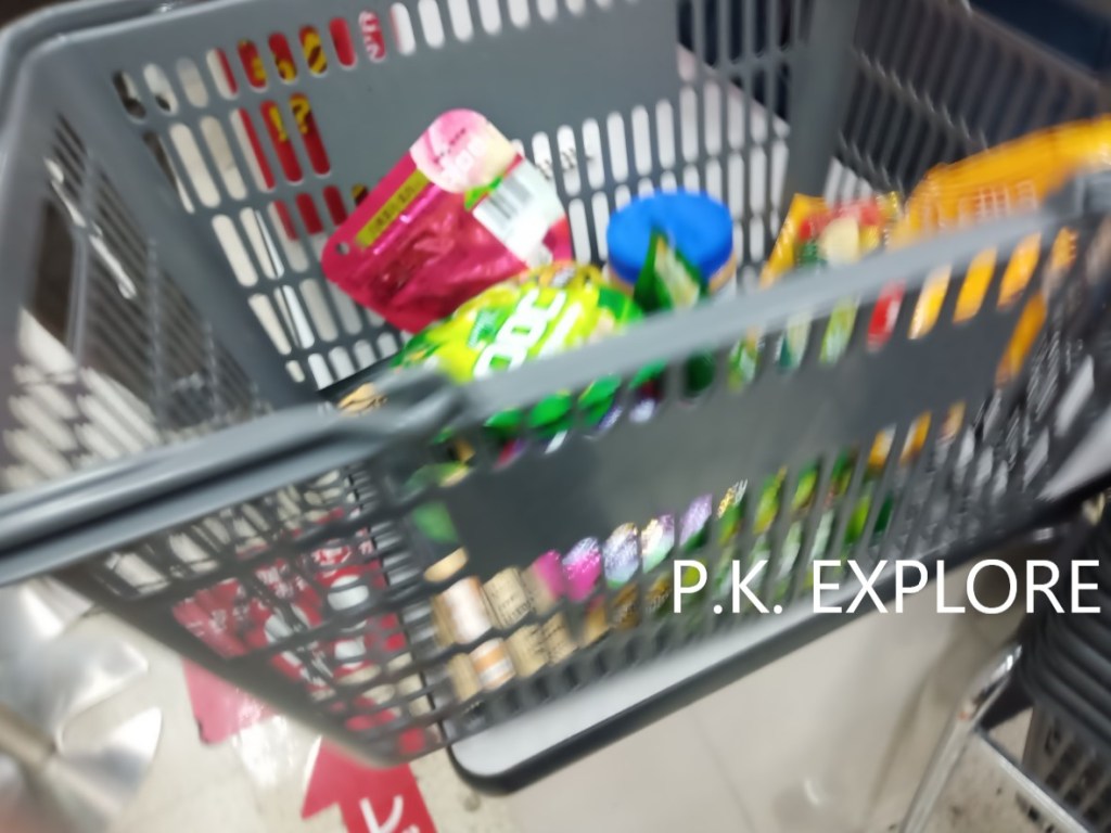 ตะกร้าพร้อมกับสินค้าหลากหลายที่ผมกำลังเลือกซื้อที่ตึกม่วง Takeya