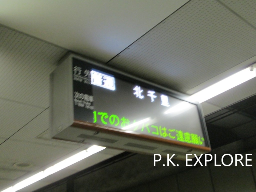 ป้ายไฟแสดงเวลาเมื่อรถไฟแต่ละขบวนมาถึงชานชาลาที่สถานีรถไฟใต้ดินแห่งนึงในโอซาก้า