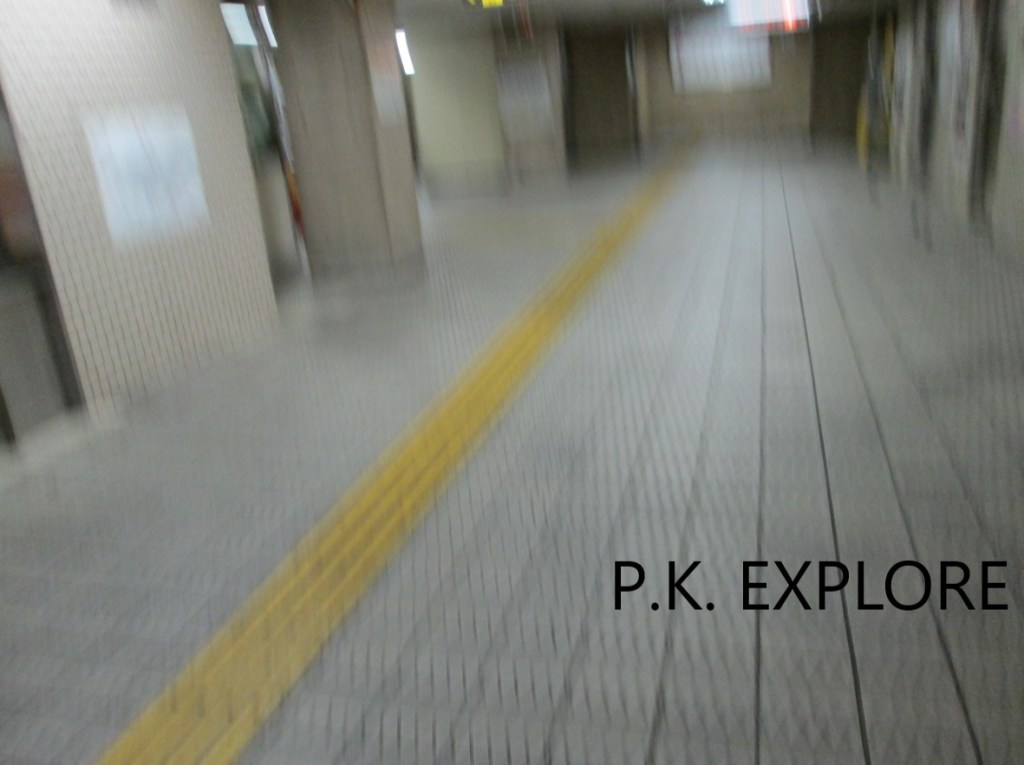 ทางเดินที่จะไปชานชาลารถไฟใต้ดินของสถานีนึงในโอซาก้า (สาย Midosuji)