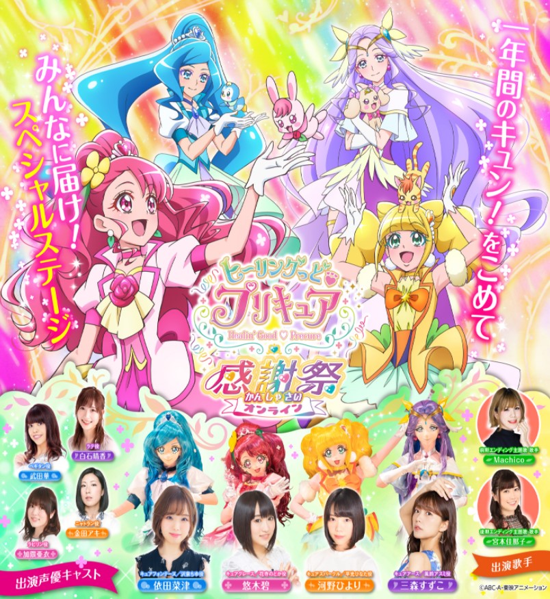 โดยปกติแล้ว งานนี้จะจัดในคอนเสิร์ตฮอลล์เหมือนกับตอนงาน Kanshasai ของ Star Twinkle Precure ที่จัดเมื่อเดือนกุมภาพันธ์ที่ผ่านมา แต่เนื่องจากผลกระทบจาก COVID-19 งาน Healin’ Good Precure Kanshasai ในคราวนี้ก็จะมาในรูปแบบออนไลน์แทน แต่ก็ต้องซื้อบัตรเข้าชมกันนะ ราคาบัตรเริ่มต้นที่ 4800 เยน (รวมภาษีแล้ว) สามารถไปดูรายละเอียดเพิ่มเติมได้ที่เว็บ https://precure-kanshasai.com/