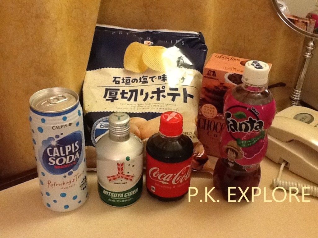 สิ่งหนึ่งที่ผมมักจะทำเป็นประจำเวลาที่พักตามโรงแรมในญี่ปุ่น โดยเฉพาะโรงแรมที่ผมพักหลายคืนติดต่อกัน ผมมักจะซื้อขนมและเครื่องดื่มจากร้านสะดวกซื้อใกล้ๆโรงแรม (รวมไปถึงตู้ขายของหยอดเหรียญในโรงแรม) และเอามาทิ้งไว้ในห้องพัก เผื่อว่าวันไหนเวลาที่ผมกลับมาที่ห้องพักและอยากจะทานอะไรเล่นๆ ก็สามารถหยิบขึ้นมาเปิดทานได้เลย