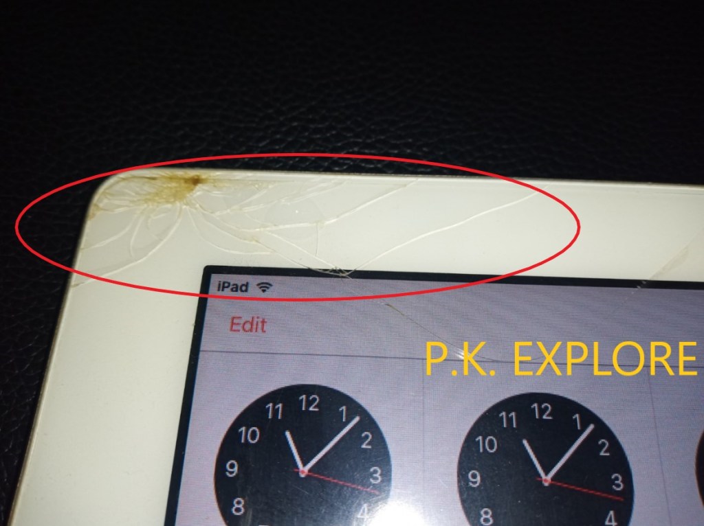 อีกทั้งหน้าจอของมันก็มีรอยแตก (ตามที่ผมทำวงกลมแดงในรูปล่าง) ซึ่งรอยนี้เกิดจากคนใช้คนเก่า (คนที่ยกเครื่องให้ผม) ที่เผลอไปทำอย่างไรก็ไม่รู้ ทำให้หน้าจอมีรอยแตก ซึ่งรอยแตกนี้ก็ไม่ได้ส่งผลต่อการใช้งานของเครื่องเลย ใช้งานได้ตามปกติ ซึ่งผมก็โอเค (ถ้าเป็นบางคนก็อาจไม่อยากใช้ เพียงแค่เพราะหน้าจอมันมีรอยแตก)