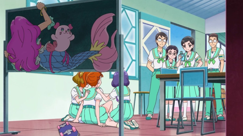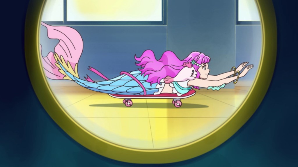 สิ่งนั้นก็คือ การที่ Laura ใช้สเกตบอร์ดในการออกไปตามหา Aqua Pot ที่ห้องคณะกรรมการนักเรียนฝ่ายวินัยนั่นเอง