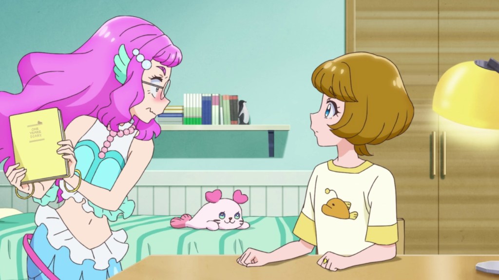 ส่วนทางฝั่ง Minori (ที่อยู่ในร่างของ Laura) ก็ได้ลองใช้ชีวิตเป็นเงือกสักครั้งนึงไปพร้อมกับ Kururun แต่ไม่นานเธอเองก็รู้สึกเหนื่อยจนอาการเกือบแย่เพราะไม่คุ้นเคยกับการเป็นเงือก
