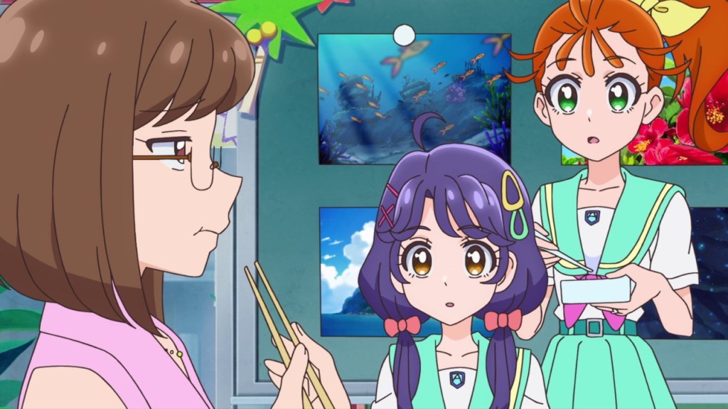 เพราะคุณพ่อของครู Saki เอง ก็จะมาด้วยในวันนั้นด้วย “ธุระอะไรบางอย่าง” (น่าจะเป็นครั้งแรกในซีรี่ส์พรีเคียวที่มีพ่อหรือแม่ของครูปรากฏตัวในเรื่อง)