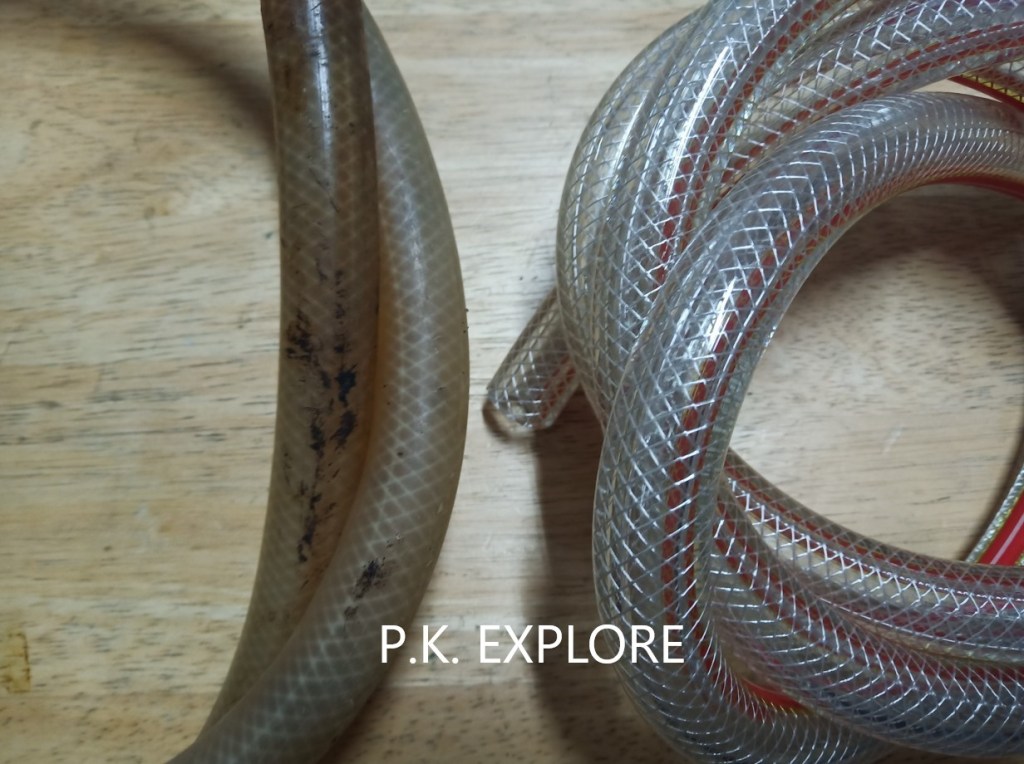 ท้ายสุด ผมเอาสายแก๊สทั้งสองแบบมาเปรียบเทียบให้ดู จะได้เห็นถึงความแตกต่างได้อย่างชัดเจนว่าระหว่างสายแก๊สที่ผ่านการใช้งานจนแข็งกับสายแก๊สเส้นใหม่