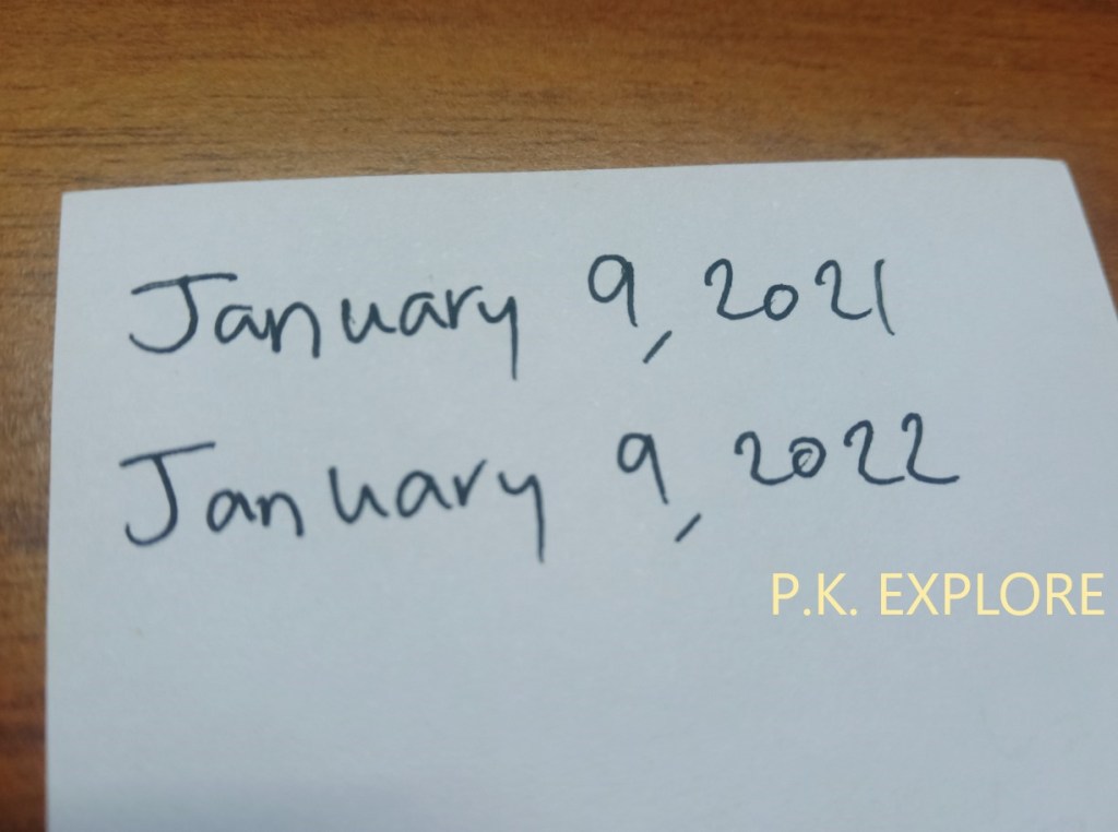 สมมุติว่าวันที่ที่ผมจะต้องเขียนวันที่ก็คือ วันที่ 9 มกราคม 2022 และผมก็จะเขียนเป็นรูปแบบตัวย่อคือ วัน/เดือน/ปี (รูปแบบการเขียนวันที่แบบตัวย่อมีหลายรูปแบบ ขึ้นอยู่กับการใช้ของแต่ละประเทศ)