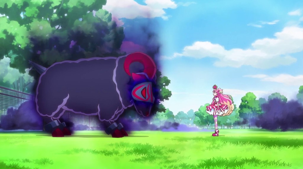 9. แม้จะเป็นเพียงแค่ตอนแรก ผมก็รู้เลยว่าจะต้องมีภูติที่เป็นผู้ช่วยเหล่าพรีเคียวในซีรี่ส์นี้เหมือนกับซีรี่ส์ก่อนๆ ถึงแม้จะยังไม่มีการเปิดเผยแบบตรงๆชัดเจน ภูติผู้ช่วยในซีรี่ส์นี้ก็คือ Meemee ซึ่งเป็นแกะ (ที่ถูกพลังมืดครอบงำที่กลายเป็น Garugaru ที่ Komugi จัดการไปได้) โดยเราจะได้เห็นการปรากฏตัวของ Meemee อย่างเป็นทางการในตอนที่ 2 นะ