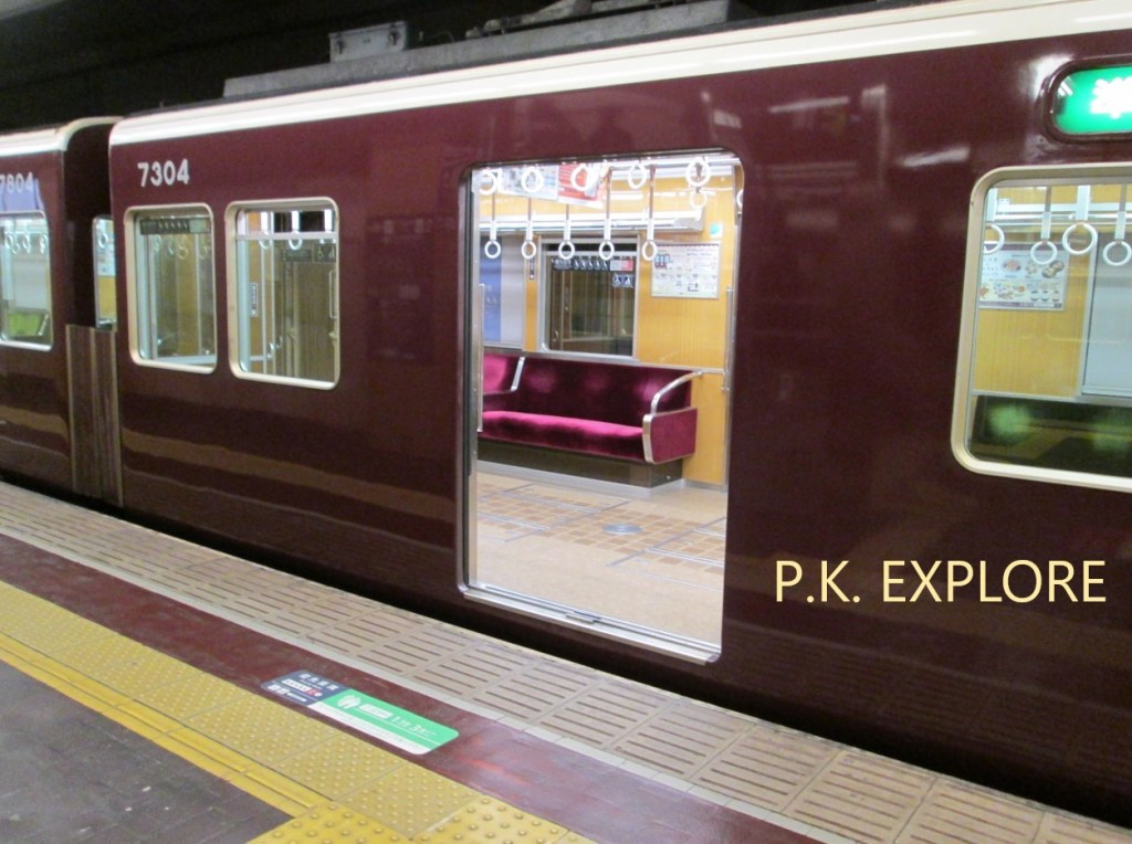 ส่วนอย่างอื่นนั้น ก็คงหนีไม่พ้นบรรยากาศในขณะที่ผมนั่งอยู่บนรถไฟ คือจะบอกว่าการที่ผมได้นั่งรถไฟสาย Hankyu มันเหมือนทำให้ผมรู้สึกย้อนยุคไปในอดีต เนื่องจากว่าตัวขบวนรถไฟมีลักษณะสีที่แตกต่างจากรถไฟสายอื่นๆอย่างชัดเจน ซึ่งน่าจะเป็นสีแดงเข้มหรือสีเลือดหมู รวมไปถึงเบาะที่นั่งภายในขบวนรถไฟที่มีทั้งสีแดงเข้มและสีเขียวเข้มที่ทำให้รู้สึกว่านี่เป็นขบวนรถไฟแบบย้อนยุคจริงๆ และให้อารมณ์เหมือนกับอยู่ในภาพยนตร์ญี่ปุ่นที่ดำเนินเรื่องในช่วงยุคปี 1940 – 1950