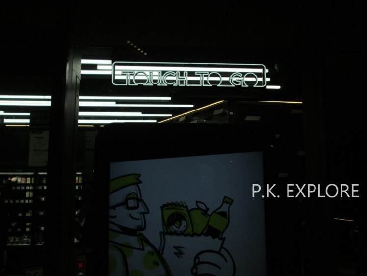 และเมื่อเราเลือกสินค้าเสร็จแล้ว เราก็เดินไปที่โต๊ะคิดเงินอัตโนมัติซึ่งตั้งอยู่ใกล้กับประตูเกททางออก เมื่อเราวางสินค้าที่เราเลือกซื้อไว้ทั้งหมดบนโต๊ะ ระบบก็จะแสดงรายการสินค้าทั้งหมดที่เราซื้อว่ามีอะไรบ้างโดยที่ไม่ต้องสแกนบาร์โค้ด (คือระบบการทำงานภายในร้านสะดวกซื้อแห่งนี้ ใช้เป็นการติดกล้องเซ็นเซอร์ตรวจจับสินค้าต่างๆภายในร้าน หากสินค้าชิ้นใดมีการหยิบออกไปกล้องเซ็นเซอร์ก็จะรู้ทันที) ซึ่งถือว่าไฮเทคมาก แค่เราถือสินค้าที่จะซื้อ เครื่องมันก็รู้ทันทีว่าเรามีอะไรอยู่ในมือ และก่อนที่จะจ่ายเงินเราก็ต้องกดยืนยันว่าสินค้าที่เราจะซื้อนั้นครบถ้วนและถูกต้อง (เพิ่มเติมอีกนิดนึงว่าระบบมีให้เลือกเป็นภาษาอังกฤษด้วย ถ้าหากไม่รู้ภาษาญี่ปุ่น)