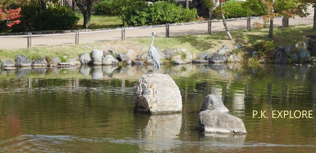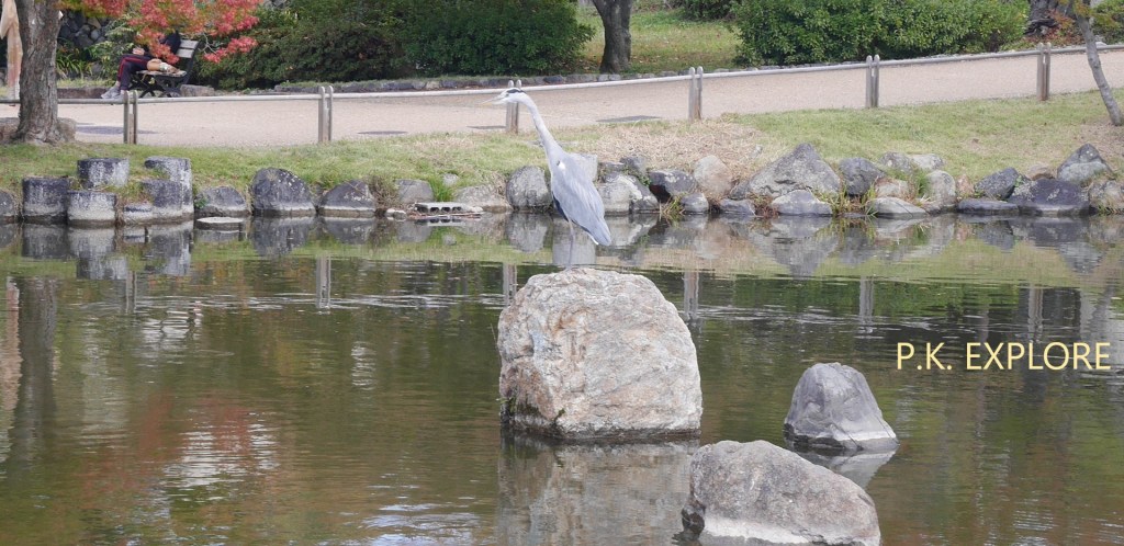 กลับมาที่นกกระสาที่ผมเห็นที่สวนสาธารณะมารุยามะ ถ้ามองดูดีๆแล้วตัวนี้เป็นนกกระสาสีเทา อีกทั้งมันก็ยืนอยู่บนก้อนหินที่อยู่ตรงกลางของบ่อน้ำ ผมจึงไม่รอช้าและเห็นเป็นโอกาสเลยรีบหยิบกล้องถ่ายรูปขึ้นมาถ่ายทันที เอาแบบให้มีหลายภาพหลายมุมให้มากที่สุดเท่าที่จะถ่ายได้