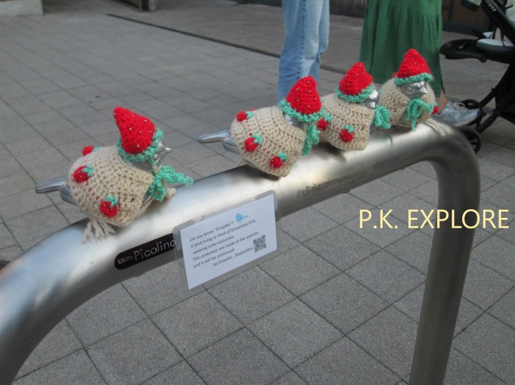 เท่าที่ผมได้พยายามค้นหาข้อมูล เสื้อผ้าที่ถักจากไหมพรมที่นกแต่ละตัวได้ใส่นั้น จะถูกสลับเปลี่ยนในทุกช่วงฤดูกาล (โดยมีกลุ่มอาสาสมัครที่มาออกแบบเสื้อผ้าให้นกไม่ให้ซ้ำกันในแต่ละช่วงฤดูกาล) ดังนั้นไม่ว่าจะมาเยือนที่สถานี Enoshima ในช่วงฤดูไหนก็ตาม ก็จะเห็นรูปปั้นนกเหล่านี้ใส่ชุดไหมพรมที่แตกต่างกันไปในแต่ละฤดู (อย่างที่ผมไปก็เป็นช่วงฤดูใบไม้ร่วง อากาศก็หนาวแล้ว ตัวเสื้อผ้าของนกก็จะเป็นแบบผ้าคลุมและมีหมวกใส่ด้วย)