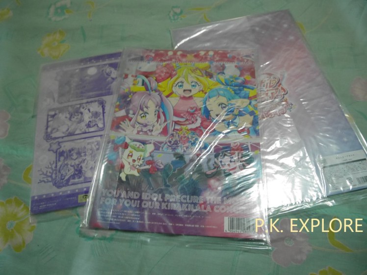 อย่างที่เห็น นี่เป็นสินค้าที่ระลึกจากภาพยนตร์ Kimi To Idol Precure The Movie ที่ผมได้มา ประกอบไปด้วย หนังสือ Pamphlet, แผ่นรองโต๊ะ และชุดเซ็ตโปสการ์ด ทั้งหมด 3 อย่าง (ต้องขออภัยด้วยที่ผมยังไม่ได้แกะพลาสติกห่อออกไปนะ)